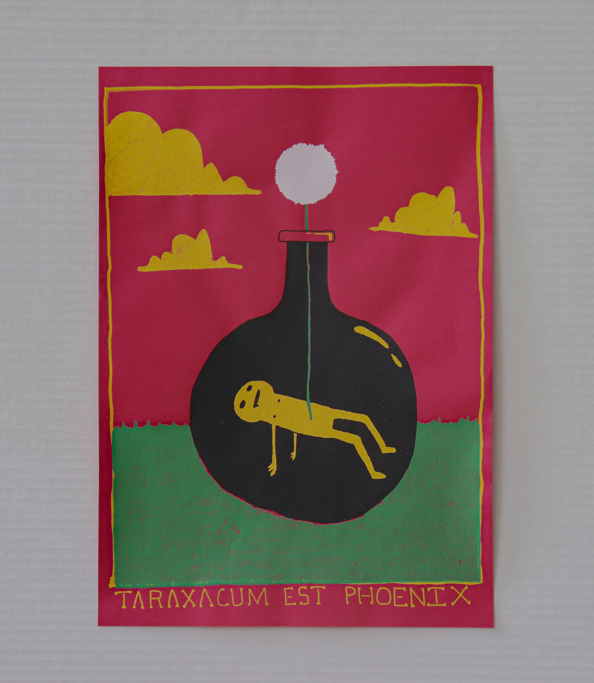 The text is Latin for “a dandelion is a phoenix.”
